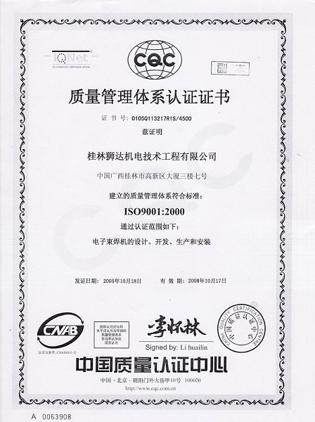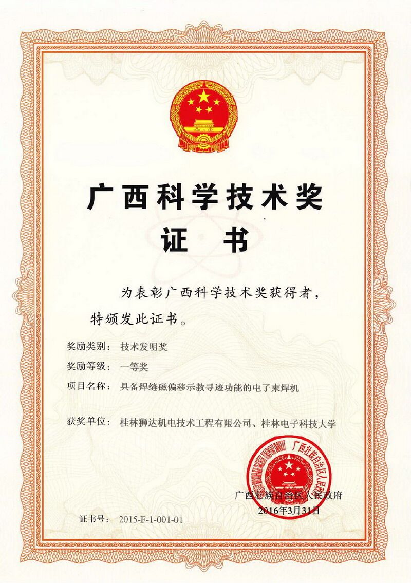 高壓電子束焊機產(chǎn)業(yè)化成果證書